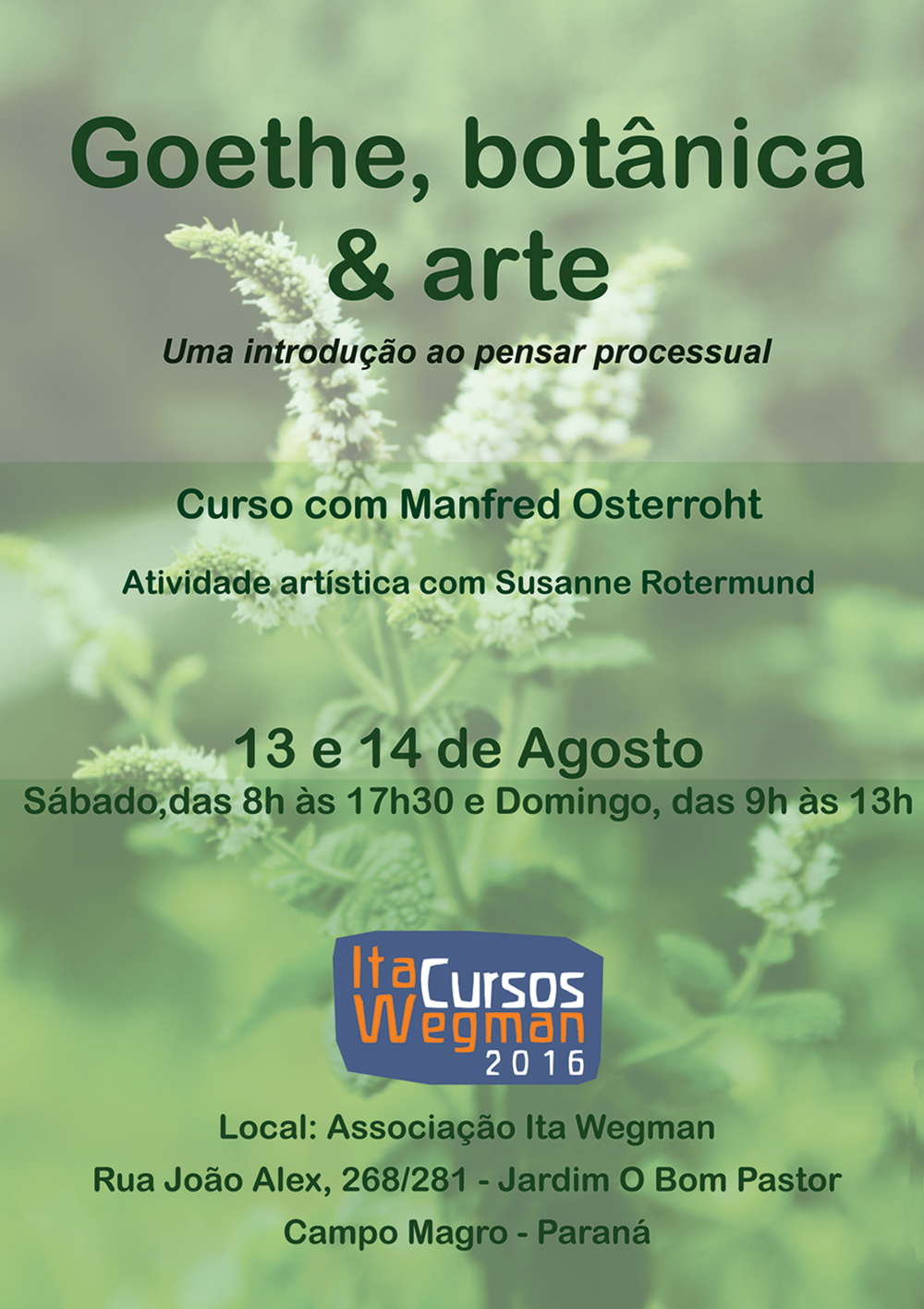 O curso é destinado a todos os profissionais que trabalham com a vida: educadores, profissionais de saúde, terapeutas, ONGs, agricultores, artistas, biólogos, ambientalistas, cozinheiros, etc…
